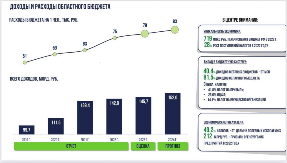 — Продолжим строительство школ – только в следующем году планируем четыре. Заложены средства на новую ледовую арену с двумя катками в Оренбурге и на капремонт Оренбургского государственного цирка. В полном объеме предусмотрены средства для реализации национальных проектов – всего более 18,5 млрд рублей в 2024 году, причем почти 10 млрд – это средства региона, — прокомментировал Денис Паслер. — Бюджет сбалансированный, но при этом гибкий. Мы понимаем, что коррективы будут уже после утверждения госбюджета на 2024 год и тем более в перспективе трехлетки. Самое главное – социальная направленность областного бюджета. Этот приоритет остается неизменным.