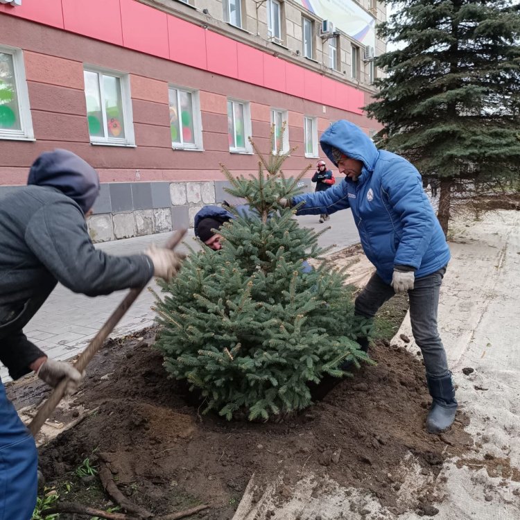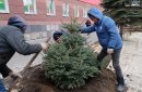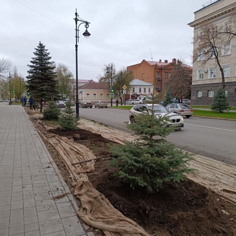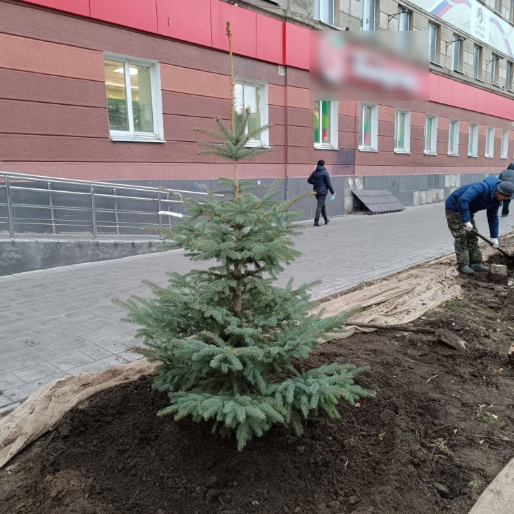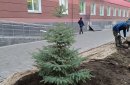 На ул. Володарского и около Дома Советов начали сажать голубые ели