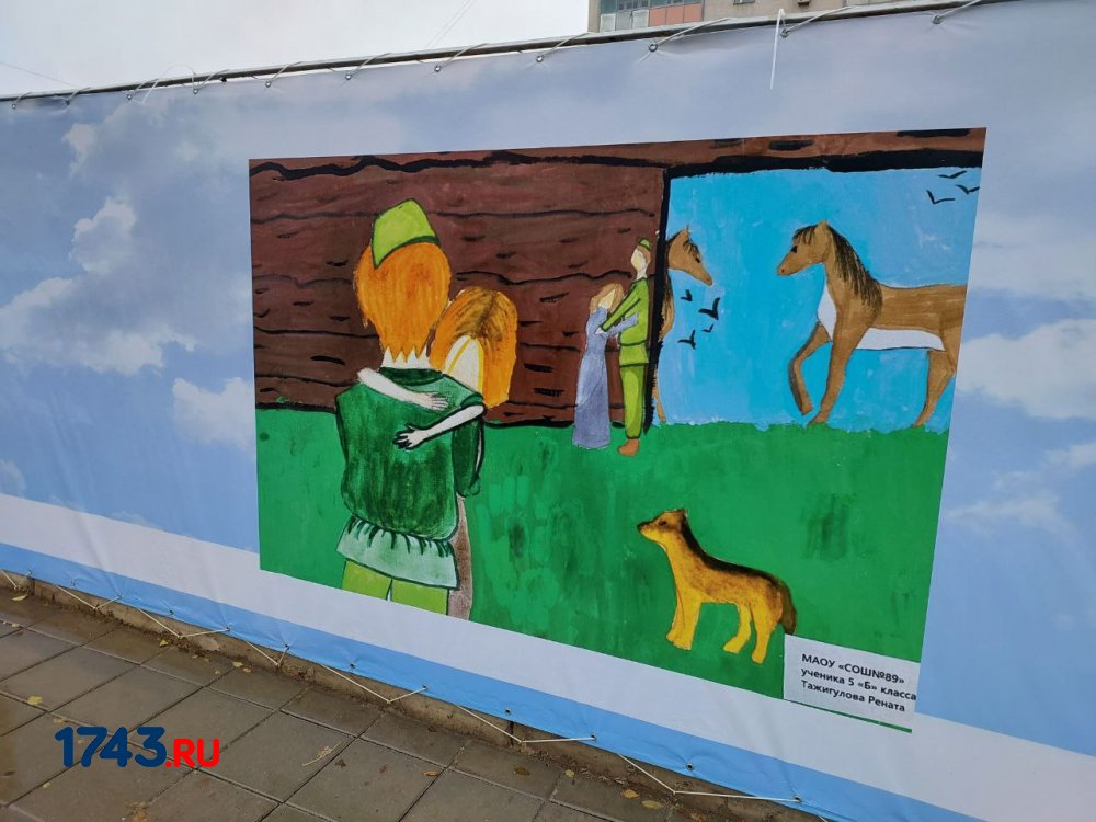 Площадь «Атриум» в Оренбурге украсили баннерами с изображениями детских рисунков. Ребята со всего региона в своих работах показали, что верят в нашу победу в СВО. На рисунках можно заметить сцены прощания родных с солдатами, уходящими на фронт, моменты боевых действий, местами даже слишком детализированные.