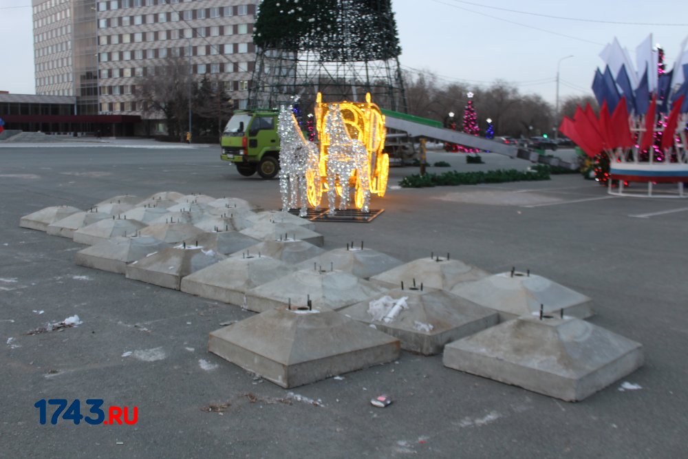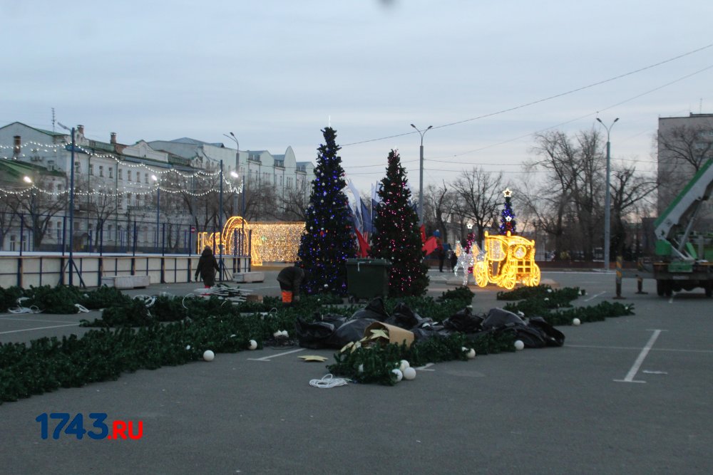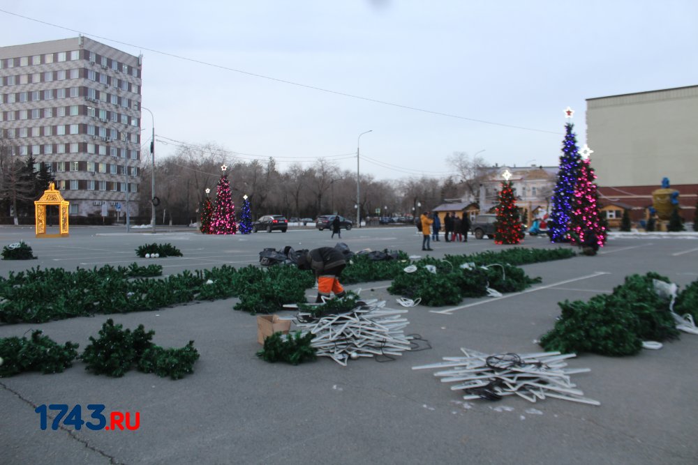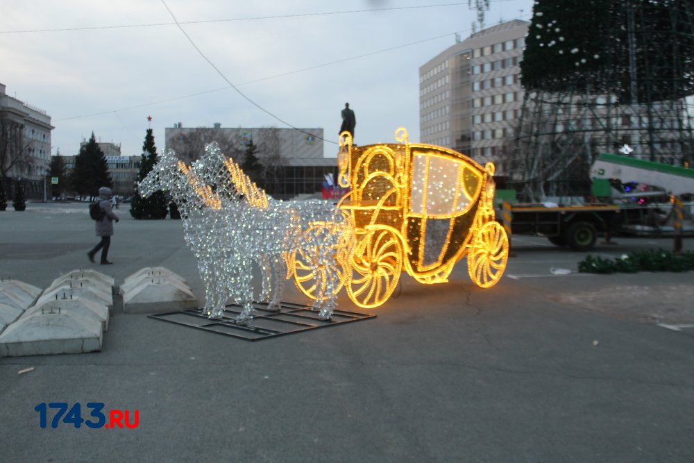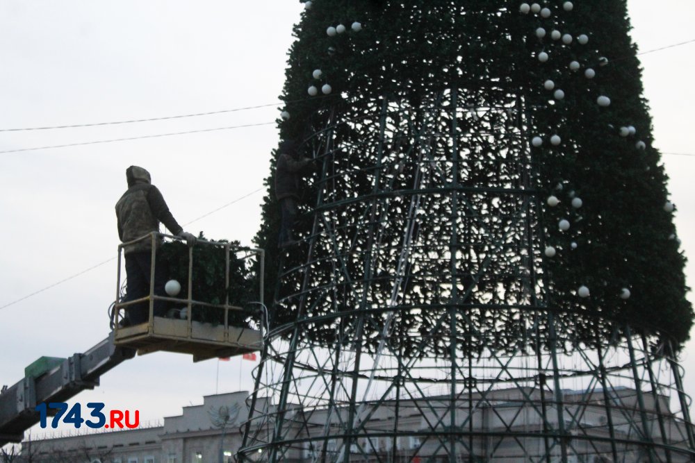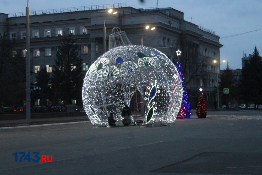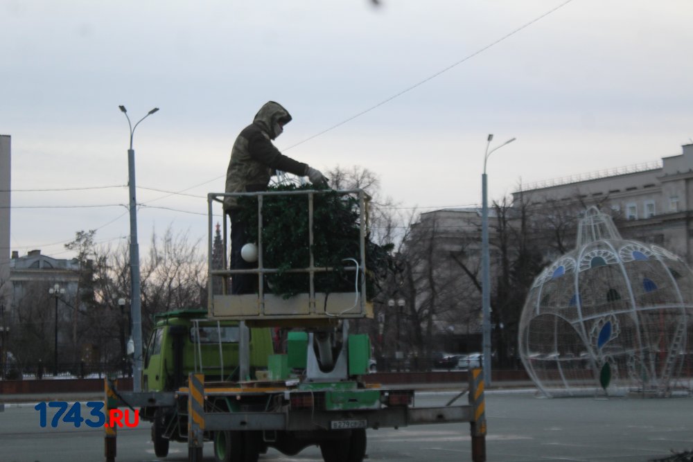 Сейчас работа по украшению площади Ленина идет полным ходом