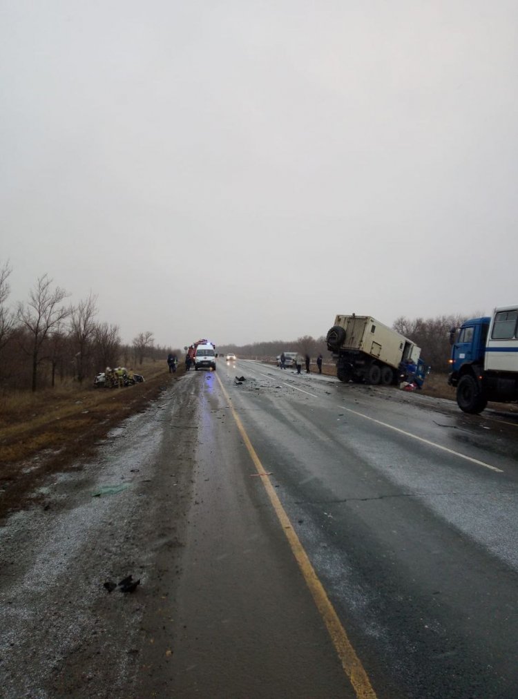 Этим утром на трассе Оренбург-Илек произошла смертельная авария. По данным УМВД и регионального управления МЧС, около 10:05 часов в районе села Городище водитель KIA CEED выехал на встречку, где столкнулся с КамАЗом. Также сообщается, что участниками ДТП стали ещё два легковых автомобиля.
