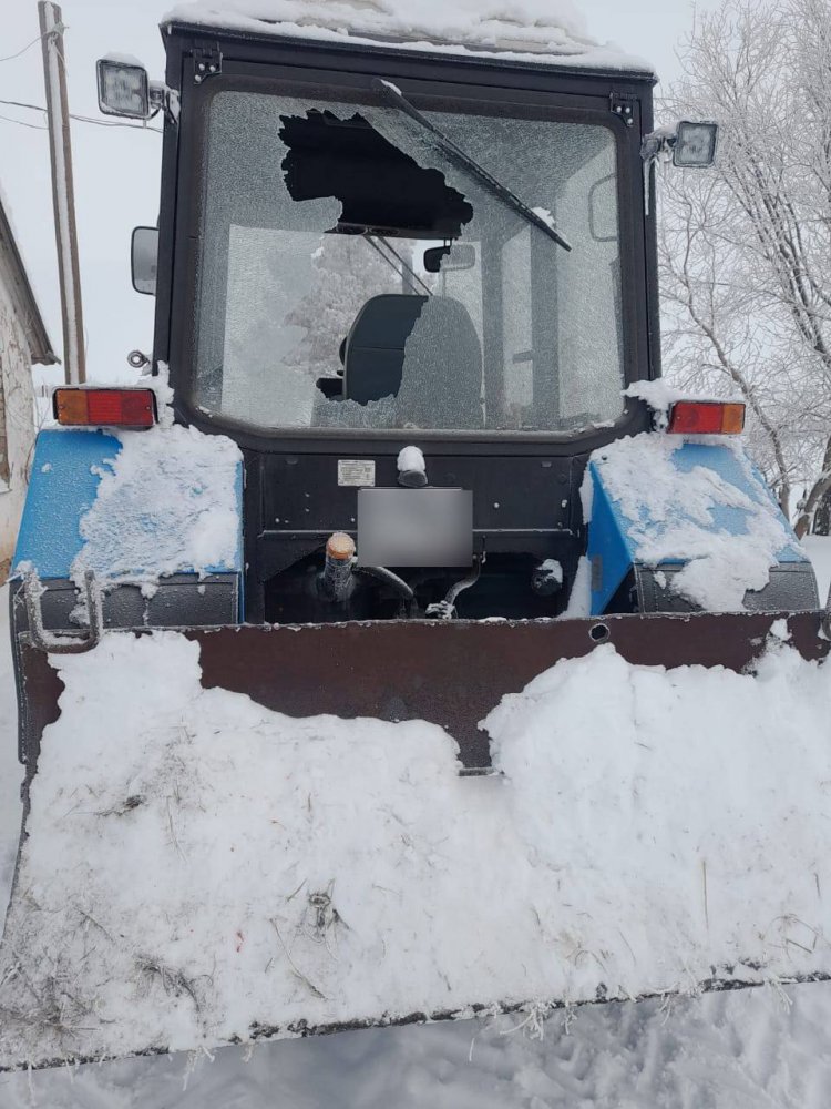 Полицейскими предварительно установлено, что 49-летний мужчина прицепил трос к трактору, а его второй конец с металлическим крюком - к тюку сена, который собирался вытянуть из снега. При движении транспорта трос порвался, и металлический крюк ударил в заднее стекло кабины, разбив его. В больницу глава КФХ обратился с ранениями обоих глаз. По факту несчастного случая проводится проверка.