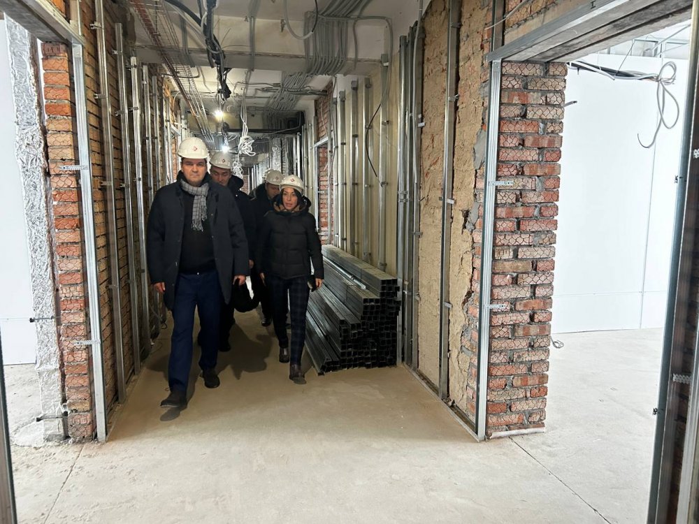– В настоящее время на объекте ведутся как внутренние, так и наружные работы – выполняется устройство каркаса из профилей под облицовку панелей, на техническом этаже происходит утепление пола. Со 2-го по 7-й этажи рабочие штукатурят кабинеты и облицовывают стены плиткой, а с 4-го по 7-й этажи – заливают стяжку пола, – отметила министр.