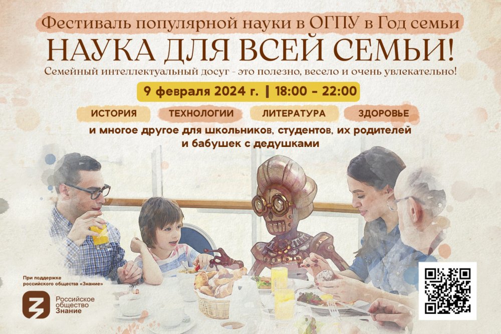В Оренбурге состоится Фестиваль популярной науки, посвященный Году семьи. Мероприятие пройдет 9 февраля с 18:00 до 22:00. Для посетителей будут работать две площадки в учебных корпусах Оренбургского государственного педагогического университета – на ул. Советской, 19 (главный корпус) и в технопарке на ул. Пушкинской, 18.