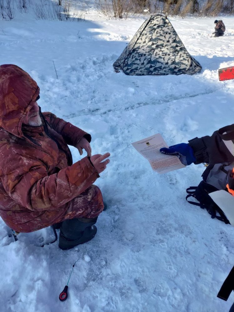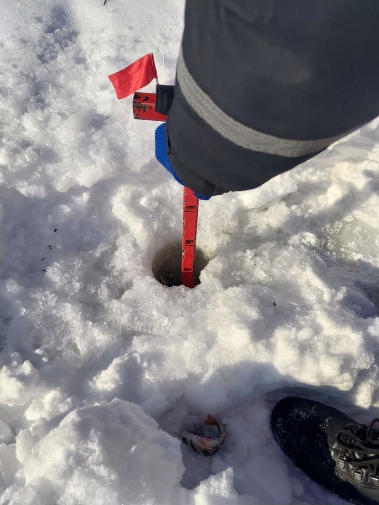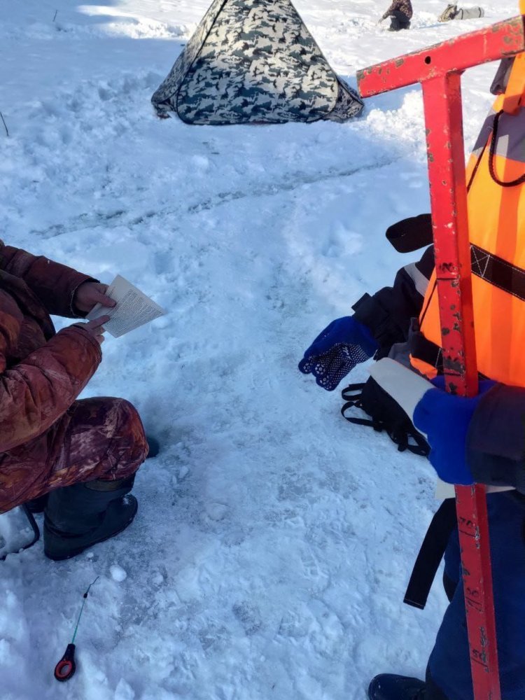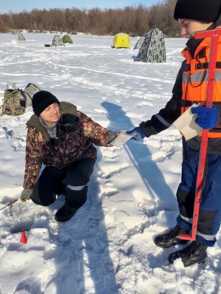 Они измерили толщину льда водоема и пообщались с рыбаками
