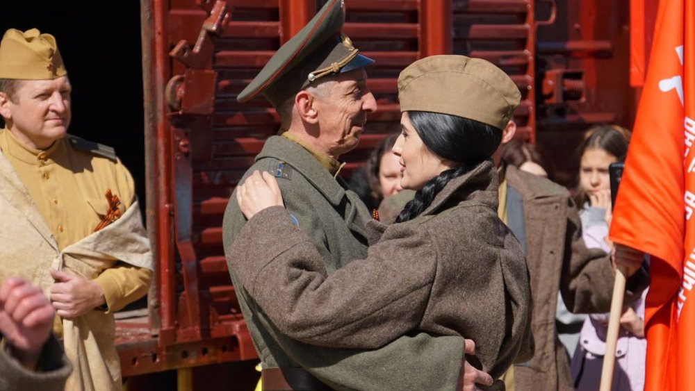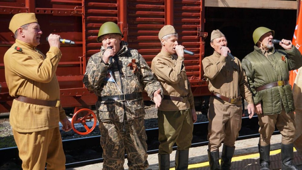 Первым в этом году ретропоезд встретил Бузулук. В годы Великой Отечественной войны на фронт ушло более 30 000 бузулучан. Они отправлялись сражаться с врагом с этой же станции. На перроне собрались труженики тыла, ветераны-железнодорожники, участники СВО, студенты и школьники.
