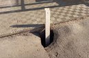 Наш корреспондент побывал на месте и выяснил, что даже беглый взгляд на состояние асфальта около здания внушает опасения – местами на фундаменте заметны провалы, некоторые из которых в глубину могут превышать 1 метр. Дыры, появившиеся в стороне от тротуаров и подъездов, заполняются пока только мусором. Однако ямы, которые мешают пешеходам, горожане «обезопасили» шинами и пометили деревянными палками. Отметим, что сейчас на месте ранее засыпанной дыры «красуется» насыпь. Матери с колясками объезжают этот участок по проезжей части, так как сложно ехать по такой поверхности.