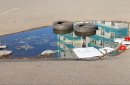 В то же время жители дома по ул. Терешковой могут «похвастаться» полноценным «озером» под окнами – на парковке один провал заполнился дождевой водой и мусором. Если приглядеться, то можно увидеть там даже что-то, напоминающее головастиков или насекомых. Еще одной опасностью для невнимательных автолюбителей становится более глубокая яма примерно в двух метрах от «водоема». Кто-то заботливо огородил его шинами, однако если колесо попадет в эту дыру, то визит в автосервис гарантирован.