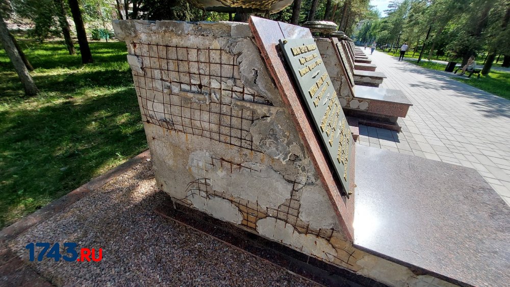 Выяснилось, что на пяти мемориалах частично отсутствуют гранитные плиты. На углах их покрытия образовались сколы, трещины, отхождения плит от основания. На «Добром ангеле мира» выпали фрагменты затирки, а на гранитном постаменте сооружения заметны сколы.