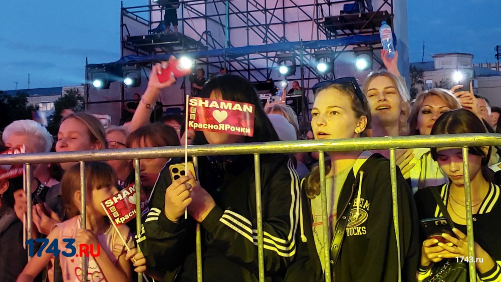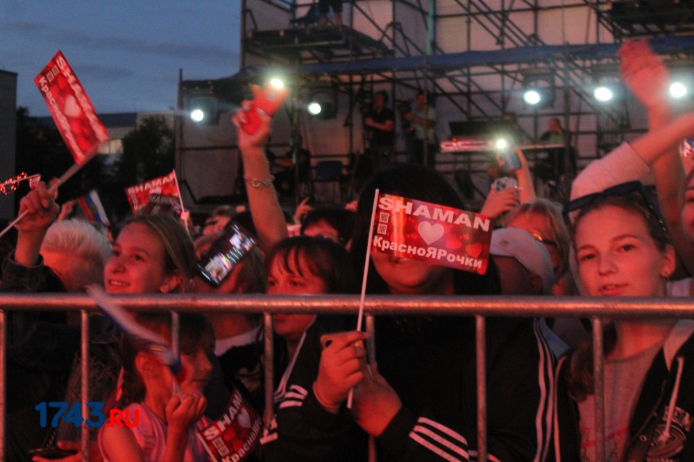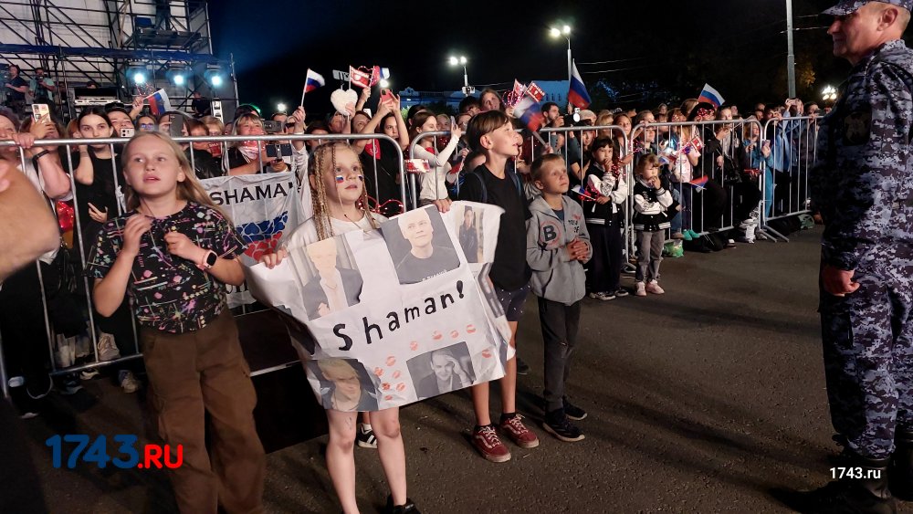Но самым ожидаемым событием дня стал выход на сцену российской звезды Шамана. Заслуженный артист России исполнил самые известные свои композиции: «Я русский», «Самый русский хит», «Мы», «Мед» и тд. Особенный ажиотаж вызвал выход певца к зрителям - он спустился со сцены и прошелся вдоль ограждения, где дети всеми силами старались обнять любимого исполнителя.