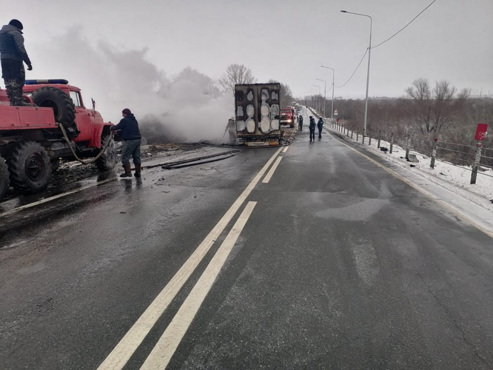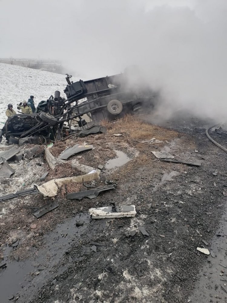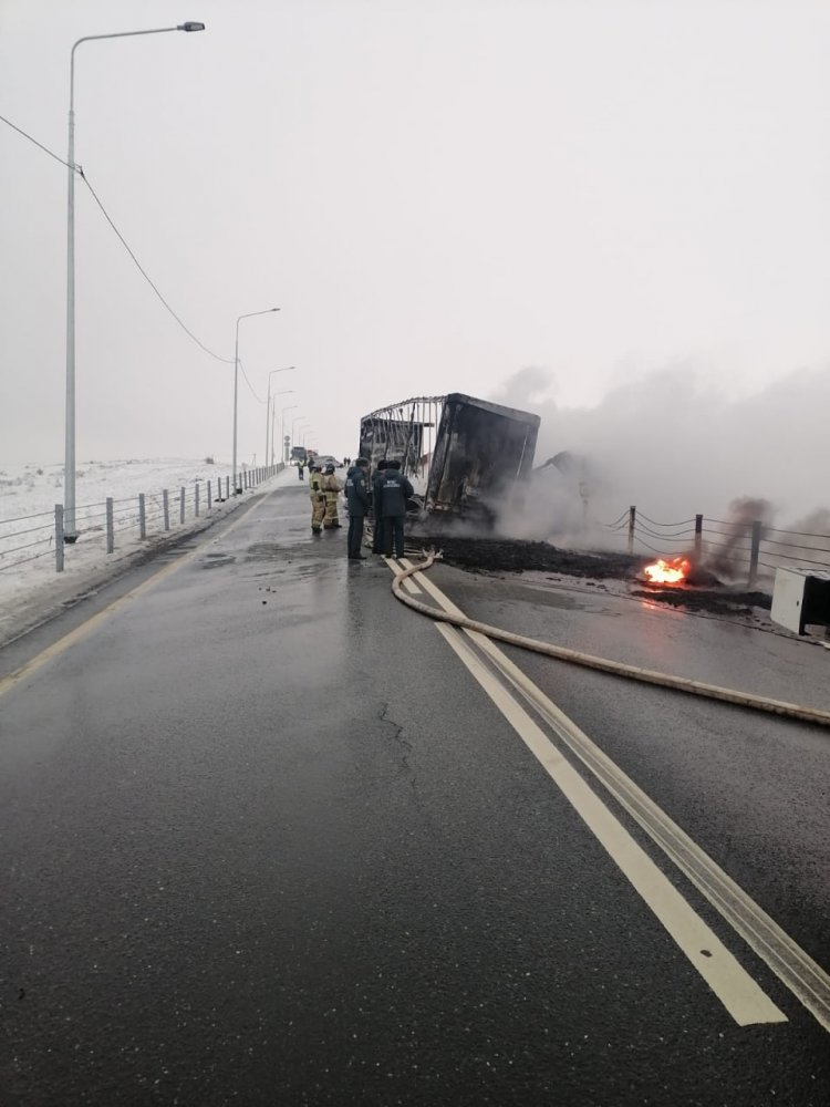 Смертельное ДТП произошло сегодня утром возле села Казанка Соль-Илецкого городского округа. По предварительным данным регионального УМВД, водитель фуры, которая двигалась со стороны Соль-Илецка, выехал на встречку и врезался в фуру. В результате произошло возгорание. Кабина первого большегруза оказалась оторвана. Второй слетел в кювет.