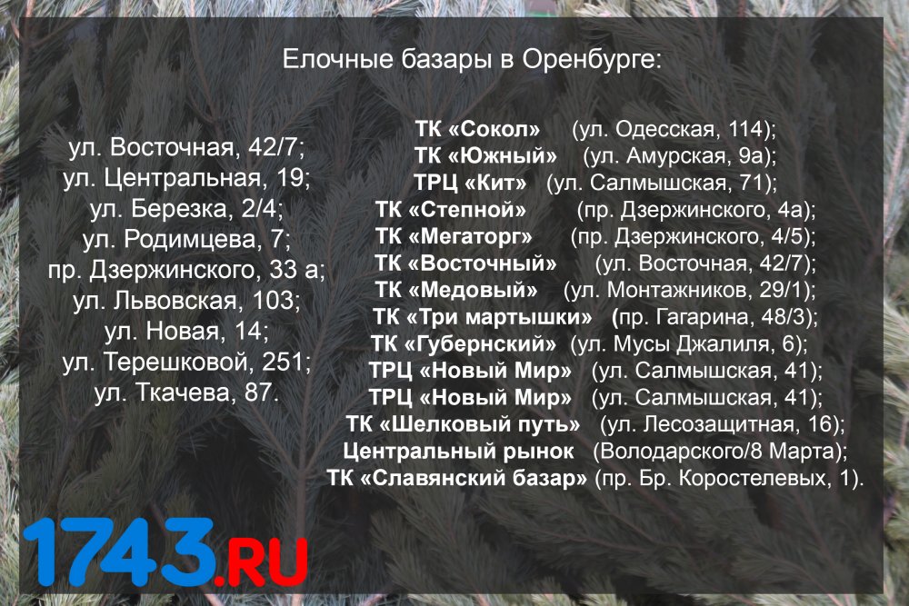 Уже завтра, 1 декабря, в Оренбурге начнут работать 22 елочных базара. Официальные площадки расположены по следующим адресам: