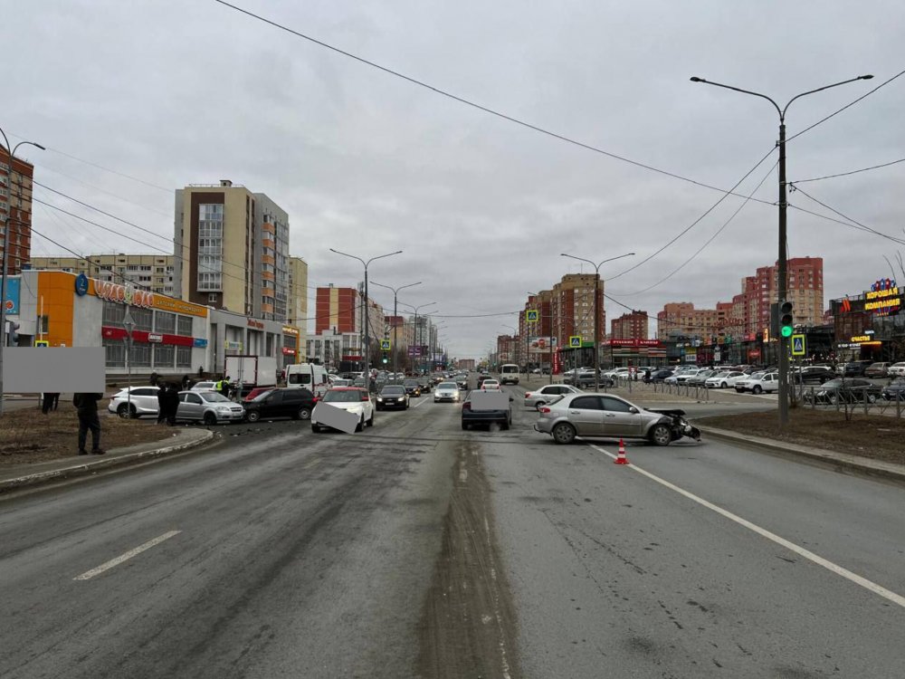 На ул. Есимова в 13:05 в Оренбурге произошла массовая авария. Полицейские предварительно установили, что автомобиль «Шевроле Лачетти» под управлением 49-летней женщины при повороте не уступил дорогу «Ладе Калина». За рулём второй машины была девушка 22 лет. От удара отечественное авто отбросило на «Шевроле Авео», за рулём которого оказалась 37-летняя оренбурженка.