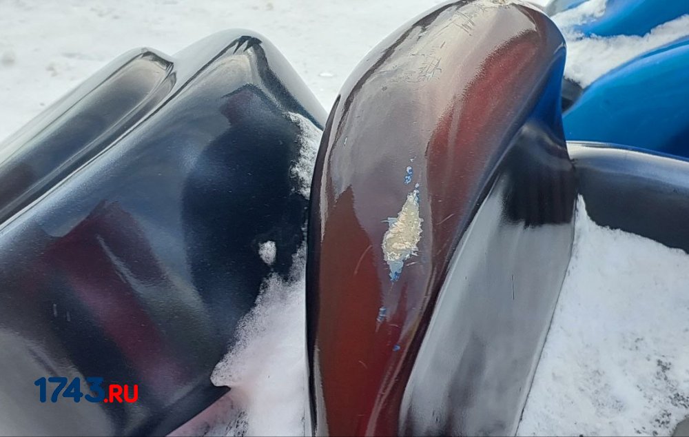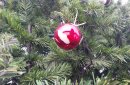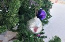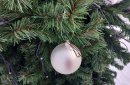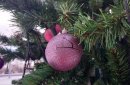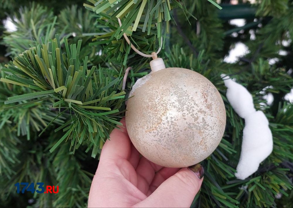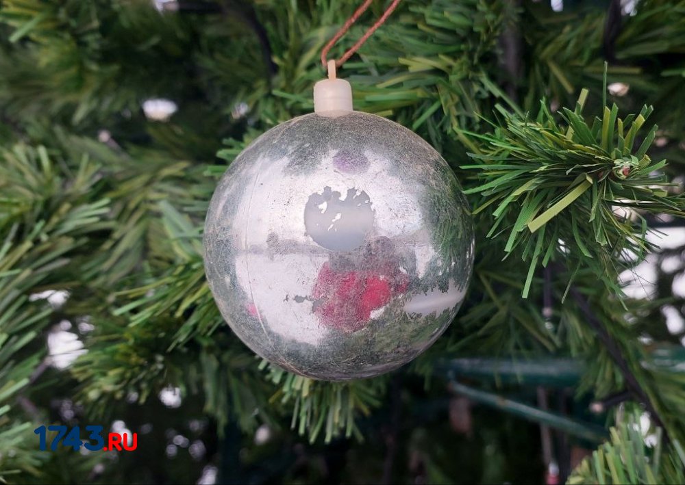Помимо разбитых шаров, некоторые игрушки были с облезшей краской, а другие висели на ржавых канцелярских скрепках. Нельзя не отметить и то, что не все шары оказались на месте — от некоторых осталось только крепление. Но взамен кто-то оставил на ветвях потерянную детскую перчатку.