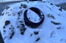 «Видимо, кто-то решил переобуться, пока стоял на светофоре», – иронизирует горожанин под фото с шиной в сугробе.