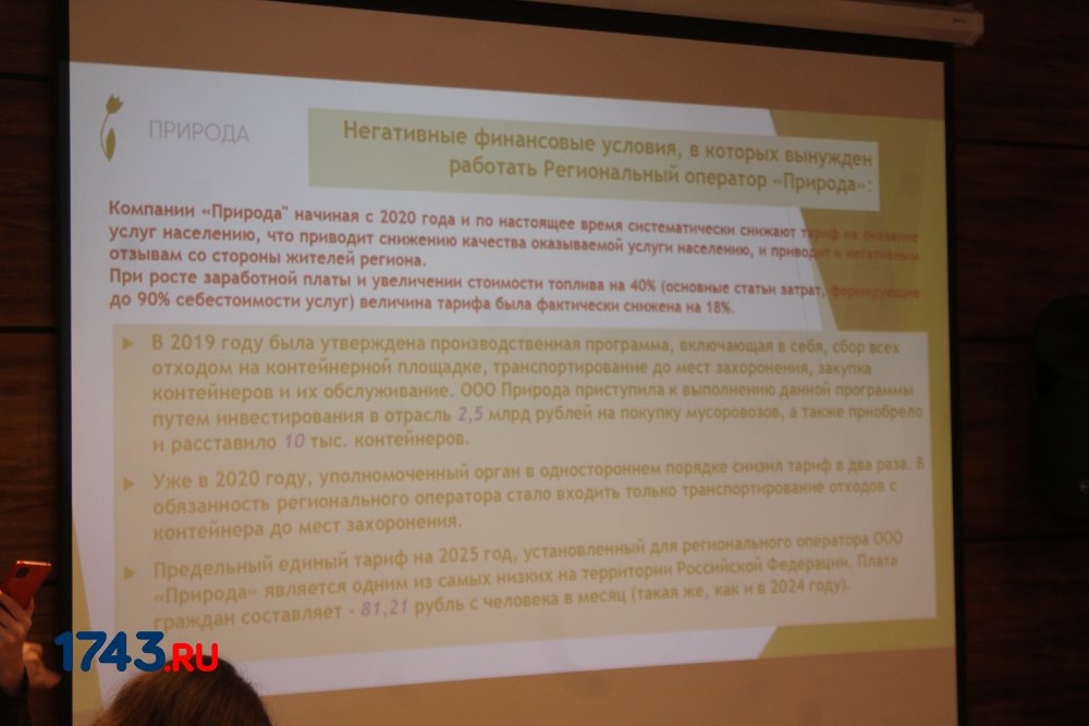 Директор регионального оператора «Природа» провел пресс-конференцию, на которой подтвердил намерение компании покинуть наш регион. Петр Александрович заявил, что по действующему тарифу в 81 рубль за 2024-ый оператор понес убытки в 45 млн рублей. Так как в текущем году стоимость вывоза ТКО не изменилась, то прогнозируемый ущерб составит порядка 360 млн. Директор заявил, что они предупредили всех, однако решения пока нет: