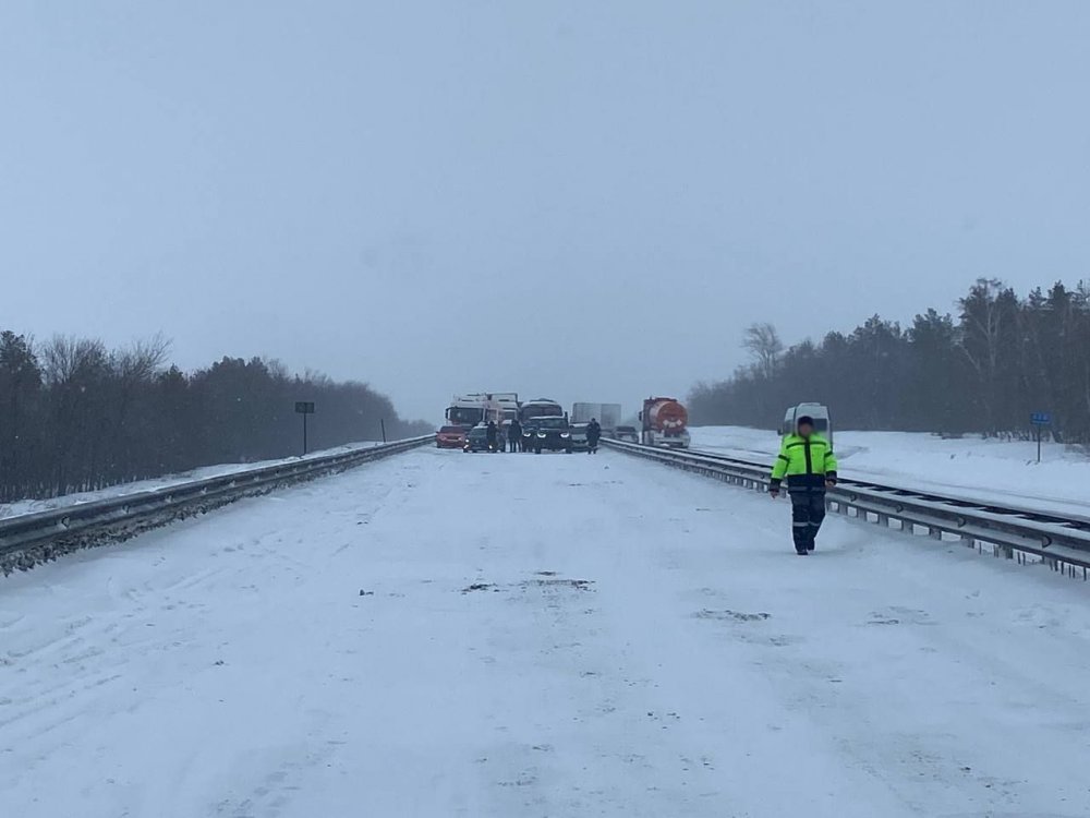 В аварии под Оренбургом столкнулись больше 20 автомобилей