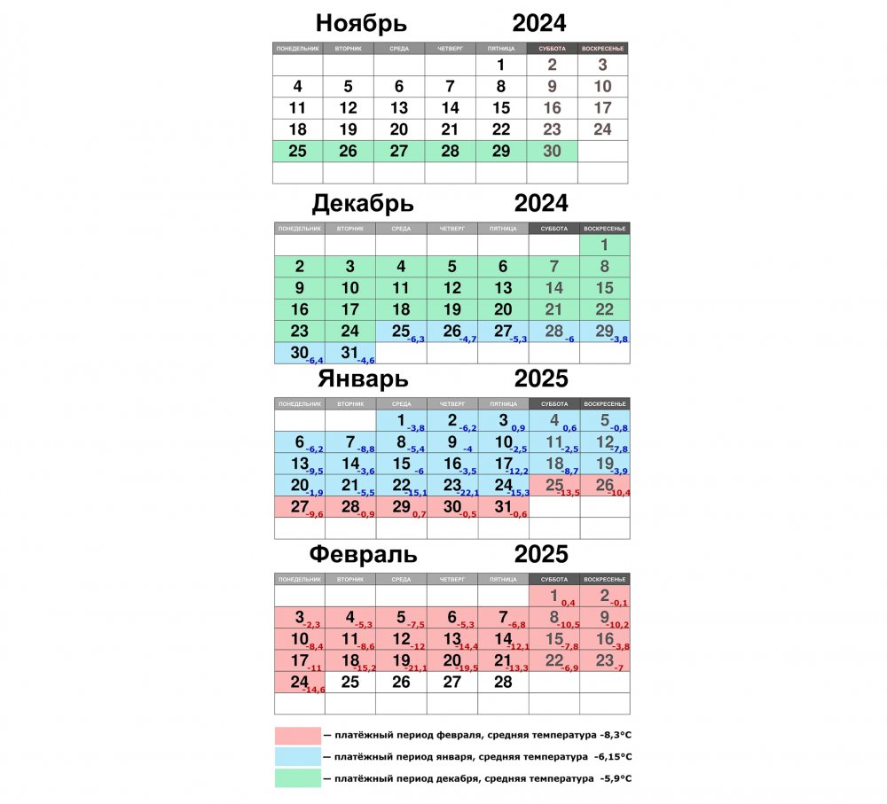 По данным климатического монитора «Погода и климат», расчётный интервал февраля (с 25 января по 24 февраля) стал самым холодным за текущий отопительный сезон. Его средняя температура составила -8,3 градуса, что на 2 градуса ниже двух предыдущих платёжных периодов.