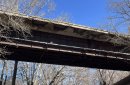 Состояние его более молодого «коллеги» чуть лучше, но тоже вызывает вопросы. Действующий мост также крошится. Особенно это заметно на тротуарах, где железобетонные ограждения местами больше напоминают горсть щебня с торчащими железными прутьями. Снизу объект выглядит не лучше: побитые карнизы и оголённая арматура. Когда находишься на мосту, испытываешь настоящий страх — конструкция «ходуном ходит» от каждой проезжающей машины.