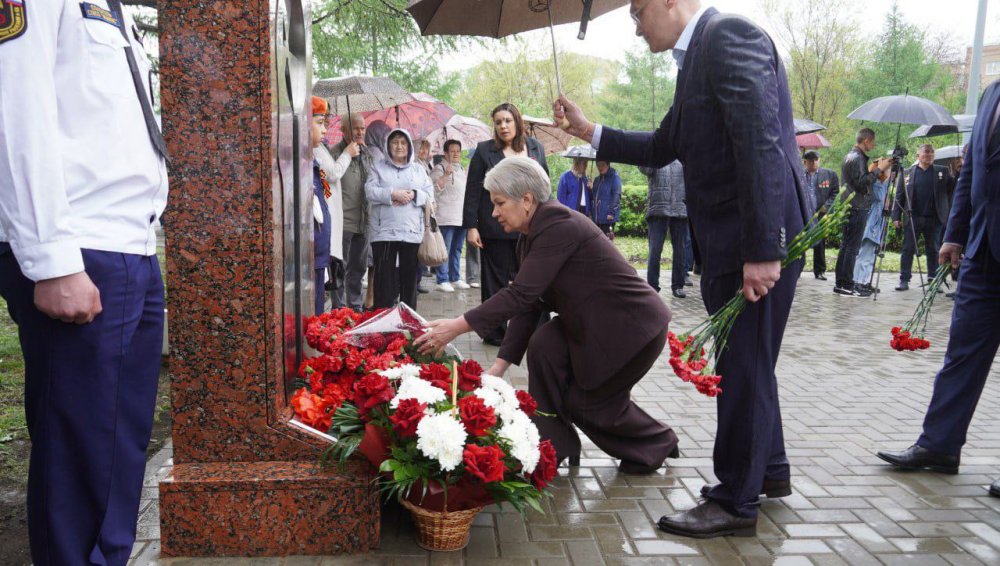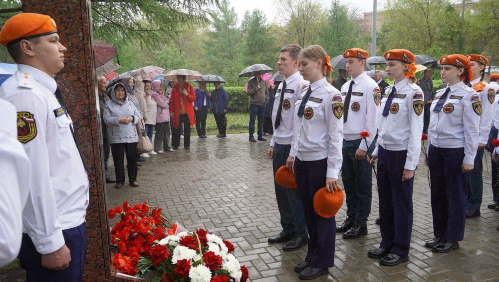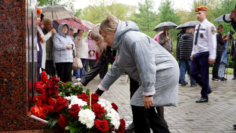 В конце церемонии участники почтили память погибших минутой молчания и возложили цветы.