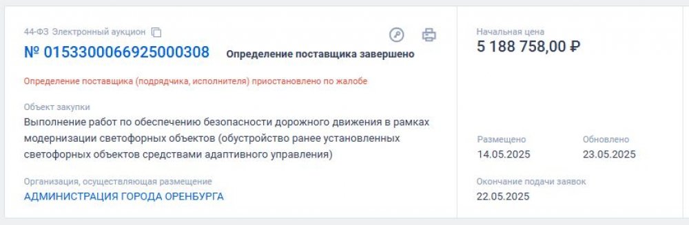Розыгрыш лота стоимостью более 5 миллионов рублей приостановлен из-за жалобы в антимонопольную службу