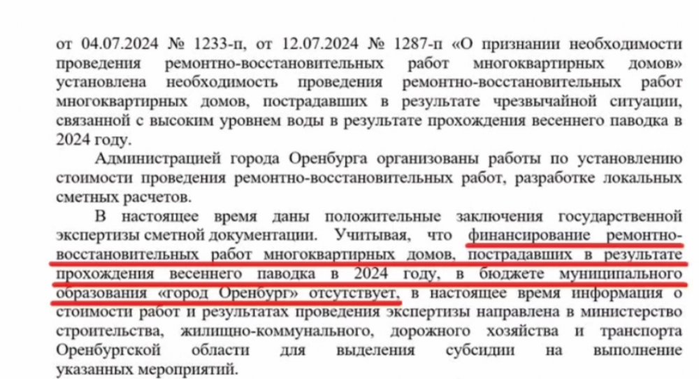 При этом ещё в конце июня 2024 года замглавы города — начальник департамента имущественных и жилищных отношений Мария Каныгина оренбуржцам сообщила: на данный момент определяется источник финансирования капремонта дома. Получается, до сих пор не определили этот самый источник? В «ОНФ» рекомендуют поискать его в средствах, выделенных на покупку новых «умных» остановок. Почти 150 млн рублей планируют потратить на стеклянные павильоны: «Народный фронт» обратился к врио губернатора Евгению Солнцеву с предложением перераспределить эти средства на ремонт общежития на ул. Механизаторов и корпуса детского сада № 106 — они оба пострадали от паводка.