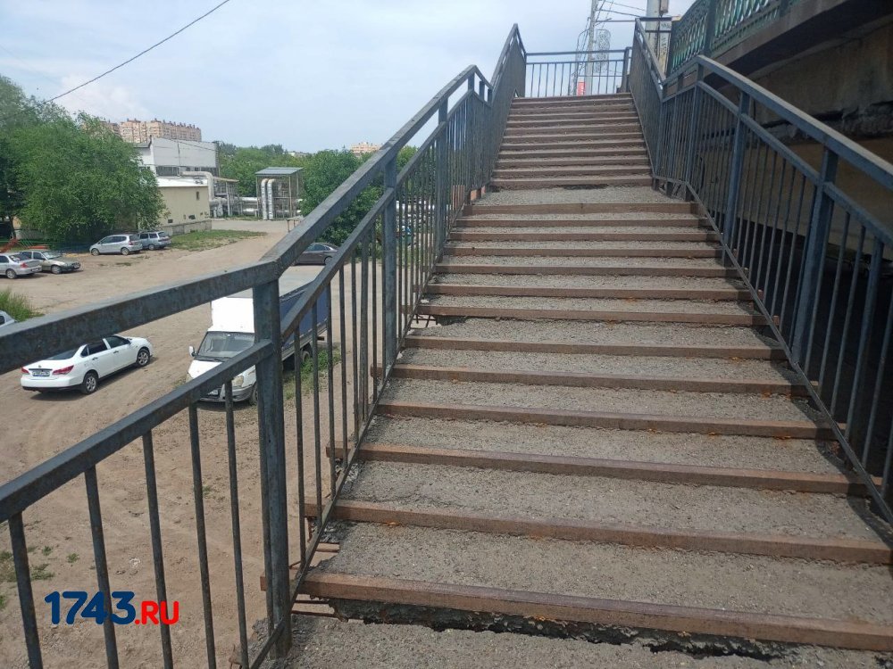 В целом, надо сказать, к мостам в Оренбурге много вопросов. Так, буквально вчера мы писали о переправе на той же ул. Терешковой, но в районе ул. Шевченко. Официально он в приемлемом техническом состоянии. Но на ступеньках и на самой переправе — огромные дыры. Ходить по нему страшно и уж не знаем, насколько безопасно.