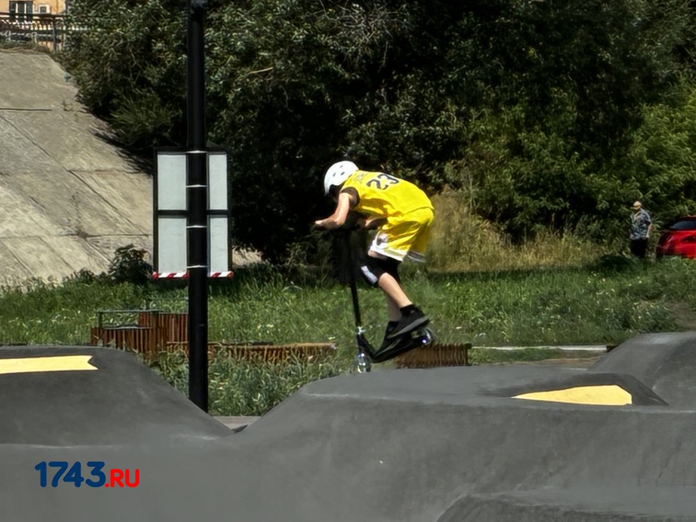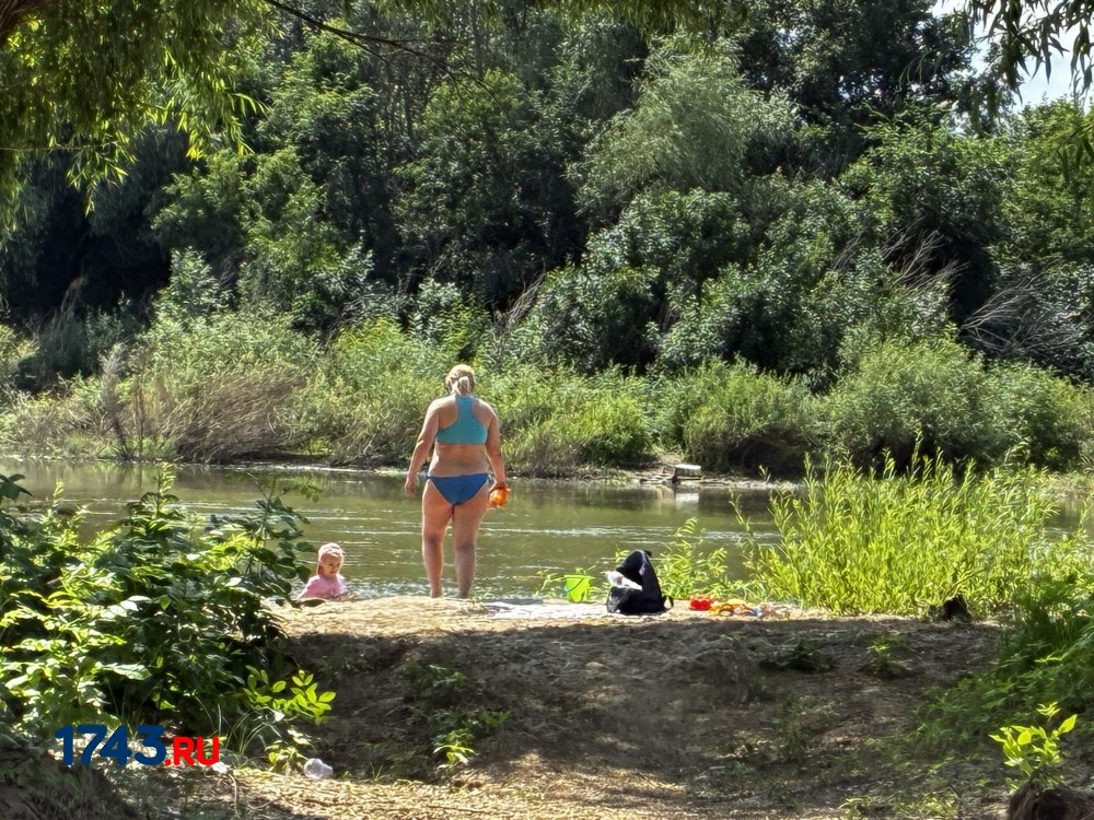 С одной стороны от тракторов, на набережной, катаются дети, с другой, на берегу — загорают взрослые. Фото 1743.ru