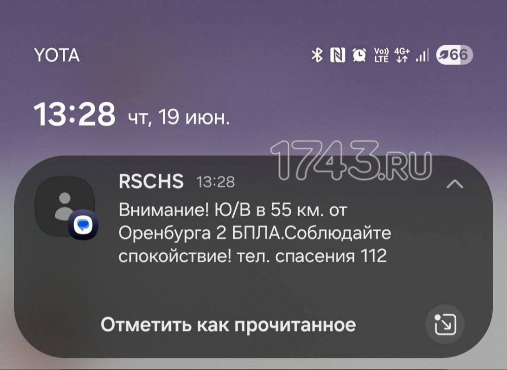 19.05.2025 г. в Оренбургской области силами ПВО объявлена воздушная тревога. Всем находящимся на пути следования БПЛА отойти за ближайшее здание (капитальное строение) или дерево, предупредить о возможной опасности других граждан. НИ В КОЕМ СЛУЧАЕ НЕЛЬЗЯ находиться в прямой видимости БПЛА, пытаться сбить аппарат подручными или иными средствами поражения, пользоваться вблизи БПЛА мобильными телефонами. Тел. спасения 112.