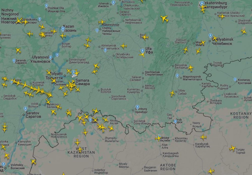 Судя по карте сервиса flightradar24, над Оренбуржьем нет ни одного пассажирского самолета.