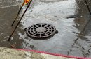 Вода бежит мимо колодца ливневой канализации. Фото 1743.ru