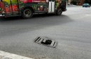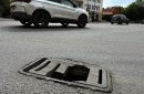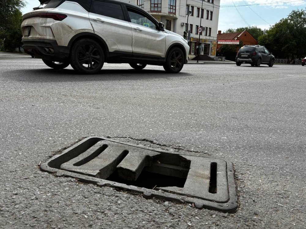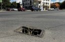 Теперь ситуация исправилась: сломанной решетки больше нет. Но не потому, что ее заменили на целую, а потому, что нет никакой! Теперь в дыру может провалиться не только человек, но и колесо машины — а перекресток здесь весьма оживленный.