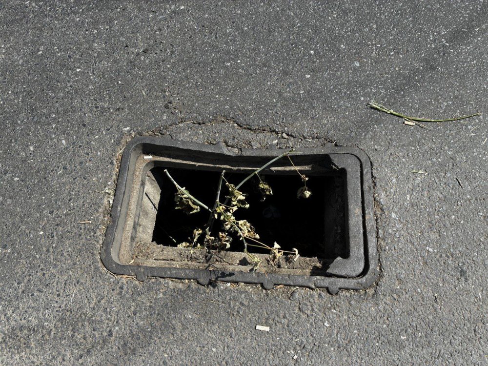Кто-то очень ответственный сунул в дыру ветку дерева, чтобы ее издалека было видно, но нам почему-то кажется, что это так себе решение. Может, хоть к новому учебному году ситуация как-то решится? Лишь бы не через трагедию…