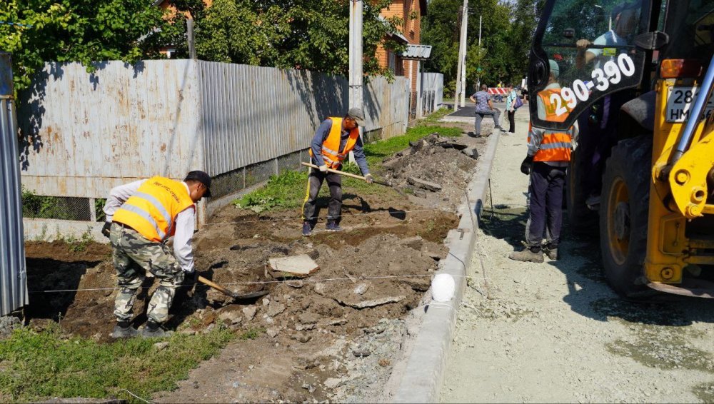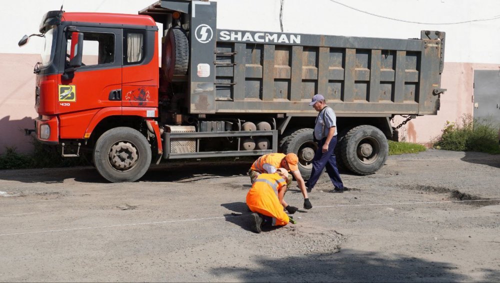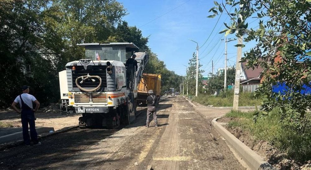 Так, на Кичигина дорогу обновят от ул. Пролетарской до ул. Невельской. Здесь работает ООО «Благоустроитель», он начал фрезерование дорожного полотна.