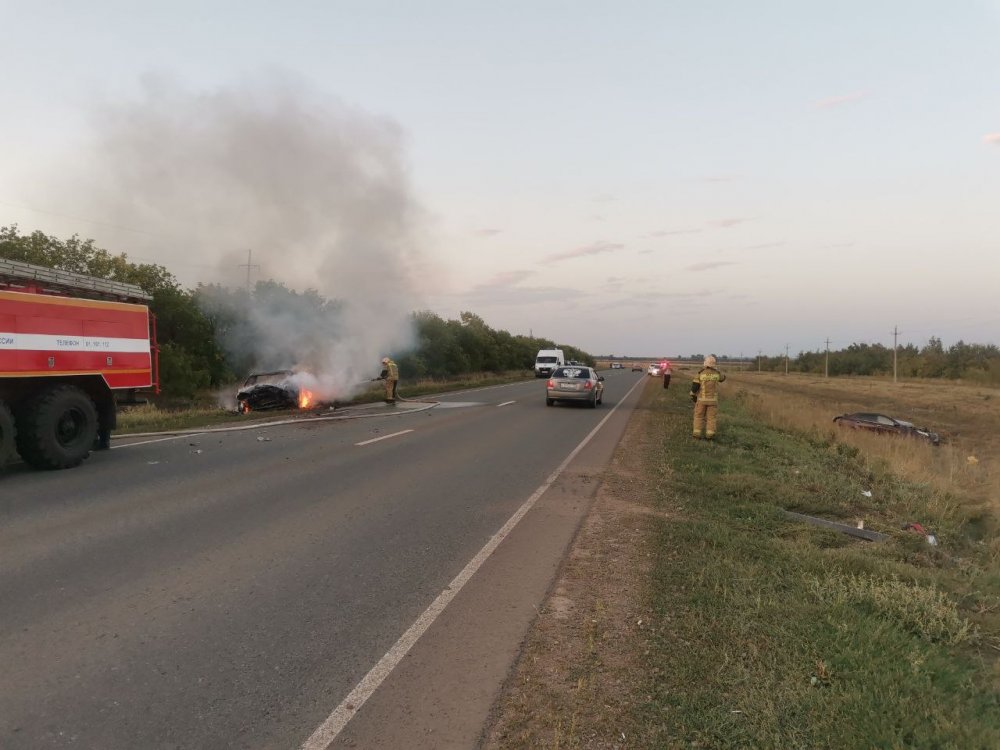 Страшная авария произошла в Курманаевском районе возле села Кутуши. Там столкнулись Mazda, трактор Т-150 и Geely Emgrand. По данным УМВД региона, 27-летний водитель автомобиля Mazda не выдержал дистанцию и, как итог, столкнулся с трактором. Тот от удара вылетел на встречку и там столкнулся с машиной Geely Emgrand. От удара автомобиль загорелся. 45-летний водитель и 17-летняя девушка-пассажир из Geely погибли на месте до приезда скорой помощи. Водитель автомобиля Mazda пострадал, его госпитализировали.