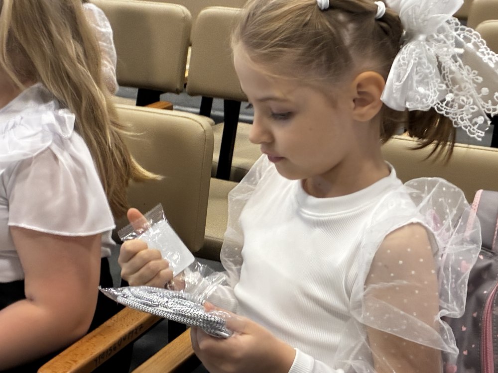 Поэтому и подарки, которые Феечка и Ураганчик сделали победителям конкурсов (а победили все, проигравши, конечно, не было) оказались такими: брелоки, которые можно прицепить к школьному рюкзачку, и шнурки, которые будут светиться в лучах фар.