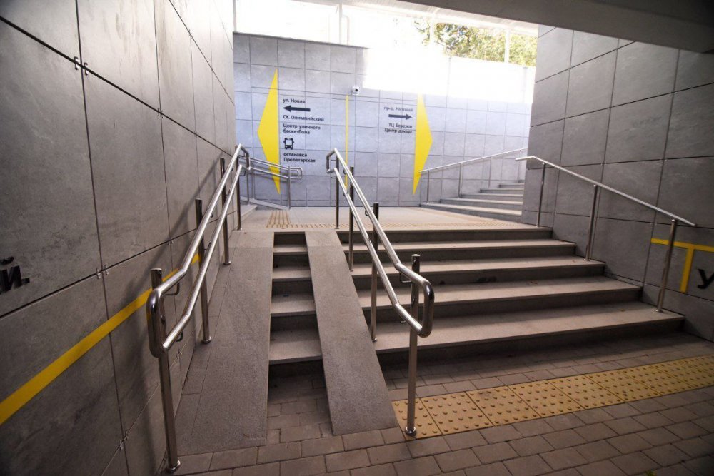 Есть пандус и перила в обновлённом подземном пешеходном переходе на Пролетарской; фото: пресс-служба администрации Оренбурга