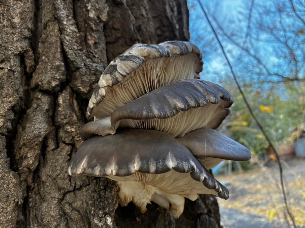 Грибы вешенки растут групами —«семьями» — на стволах деревьев. Фото 1743.ru