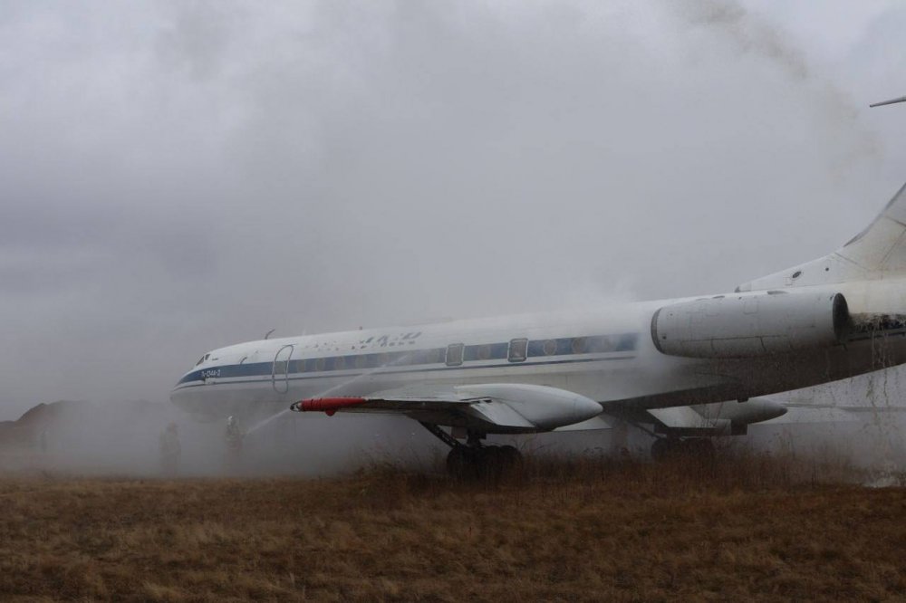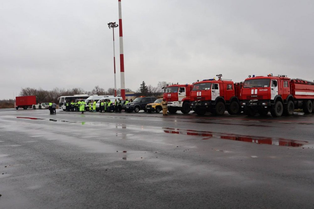 В аэропорту Оренбурга прошли комплексные учения. По легенде, у самолёта загорелся левый двигатель, и он соверши аварийную посадку на аэродроме.