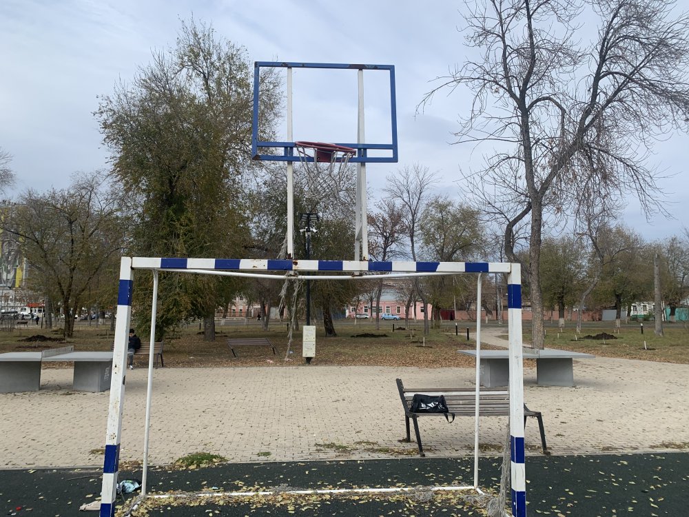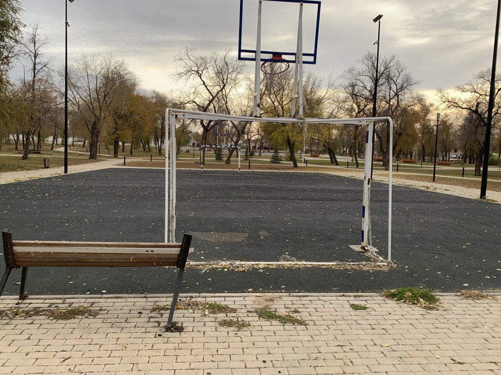 Объекты, установленные в ходе реконструкции, сильно обветшали, краска на них облупилась. У футбольных ворот нет сетки, у баскетбольных колец нет щита, а сами они погнуты. К тому же, щит приварен к воротам — решение сомнительное с точки зрения безопасности, баскетболистам приходится играть очень осторожно, чтобы не удариться головой о верхнюю штангу.