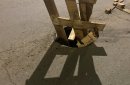 В яму воткнули доски, чтобы её было видно, но это спасает не всех