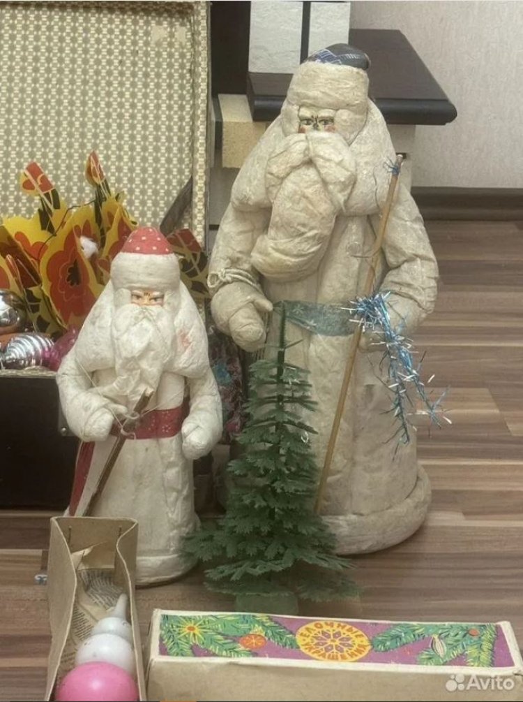Есть Деды из ваты, покрытой папиросной бумагой, а есть — из пластмассы. Первые были понаряднее, но сохранились хуже. Вторые — попроще, зато над ними время не так покуражилось. А стоят одинаково — по 1 тысяче за дедушку.