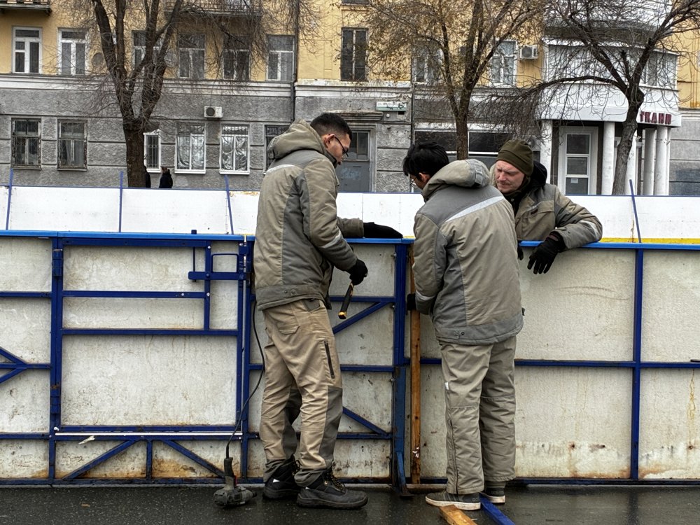 12 ноября на площади Ленина стали монтировать конструкции, которые мы уже видели раньше: ограждение для катка, павильоны и т.д.