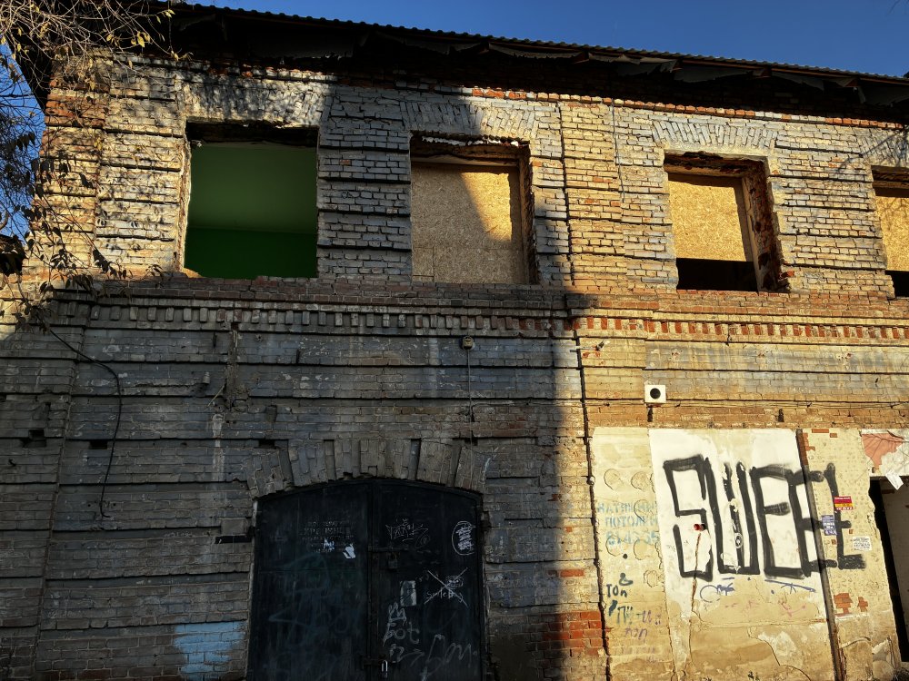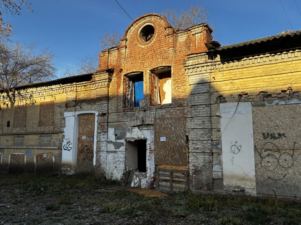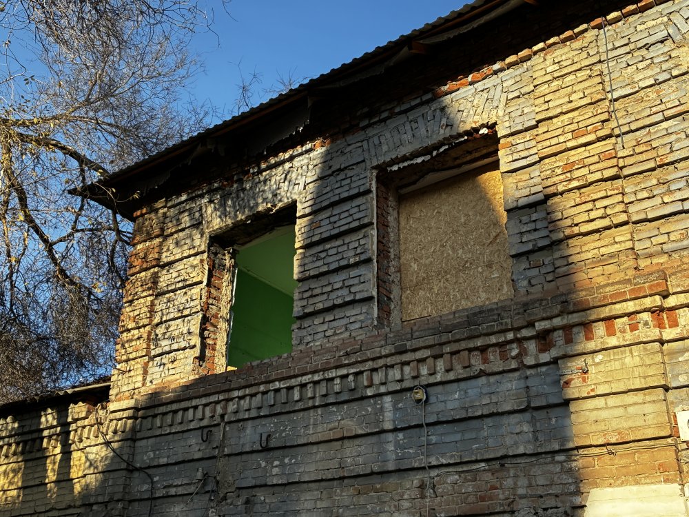 Окон и дверей в здании почти не осталось — проемы просто заколочены досками.