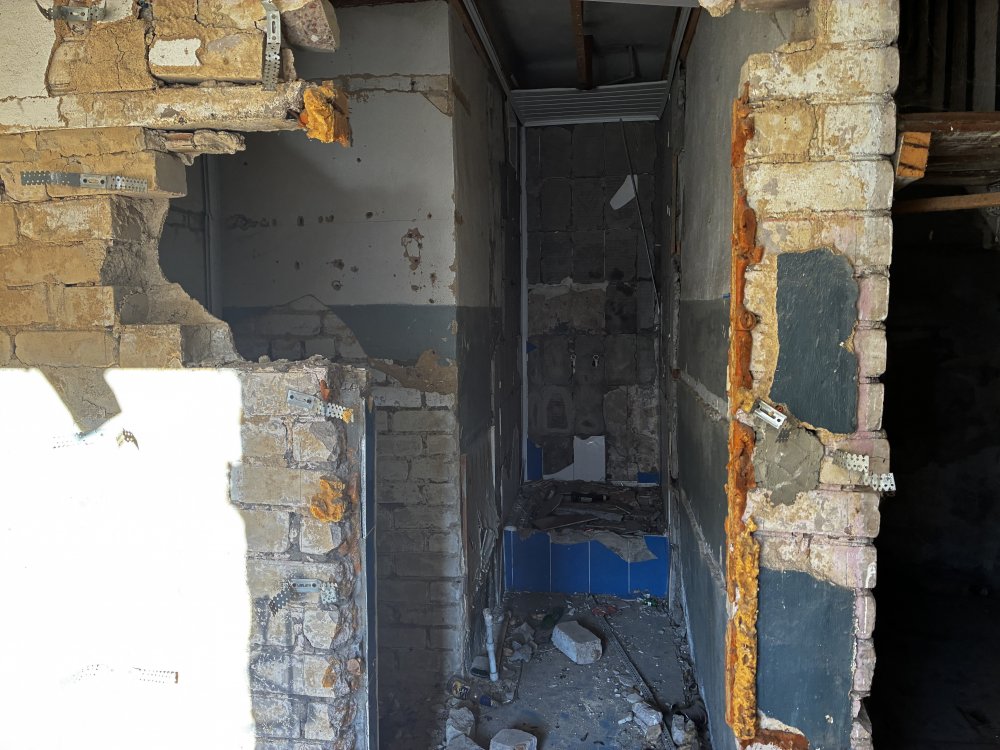 Но при этом видно, что часть стен уже разобрали: за одной из них была ванная комната, она теперь оказалась на улице. А со стороны улицы Бурзянцева осталась стенка с дверью, которая никуда не ведет.