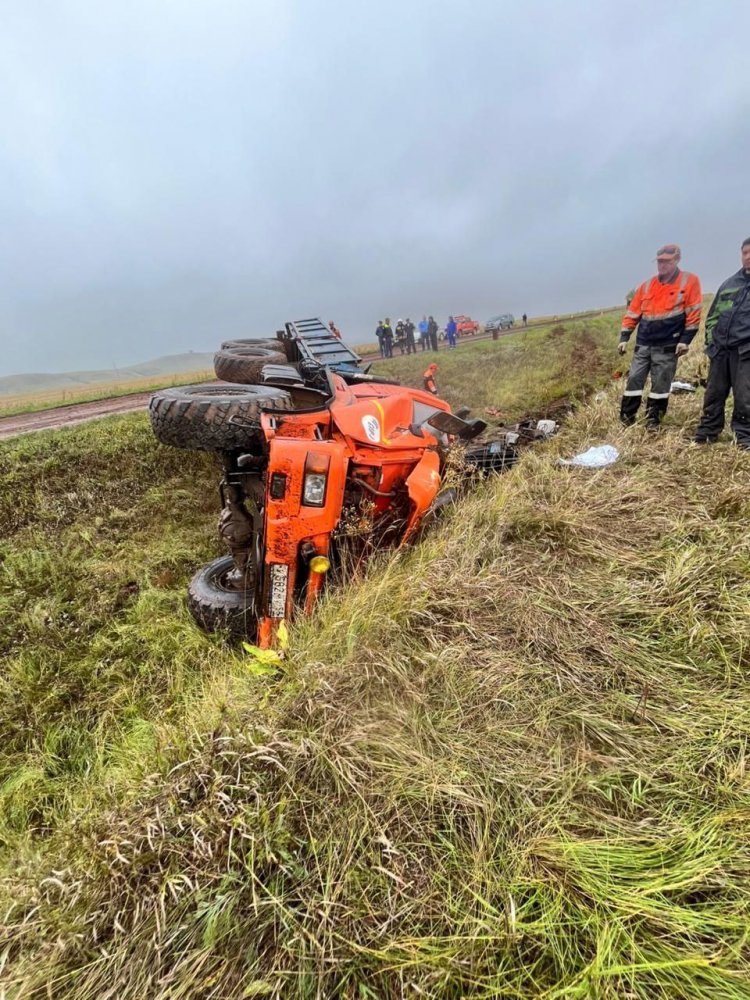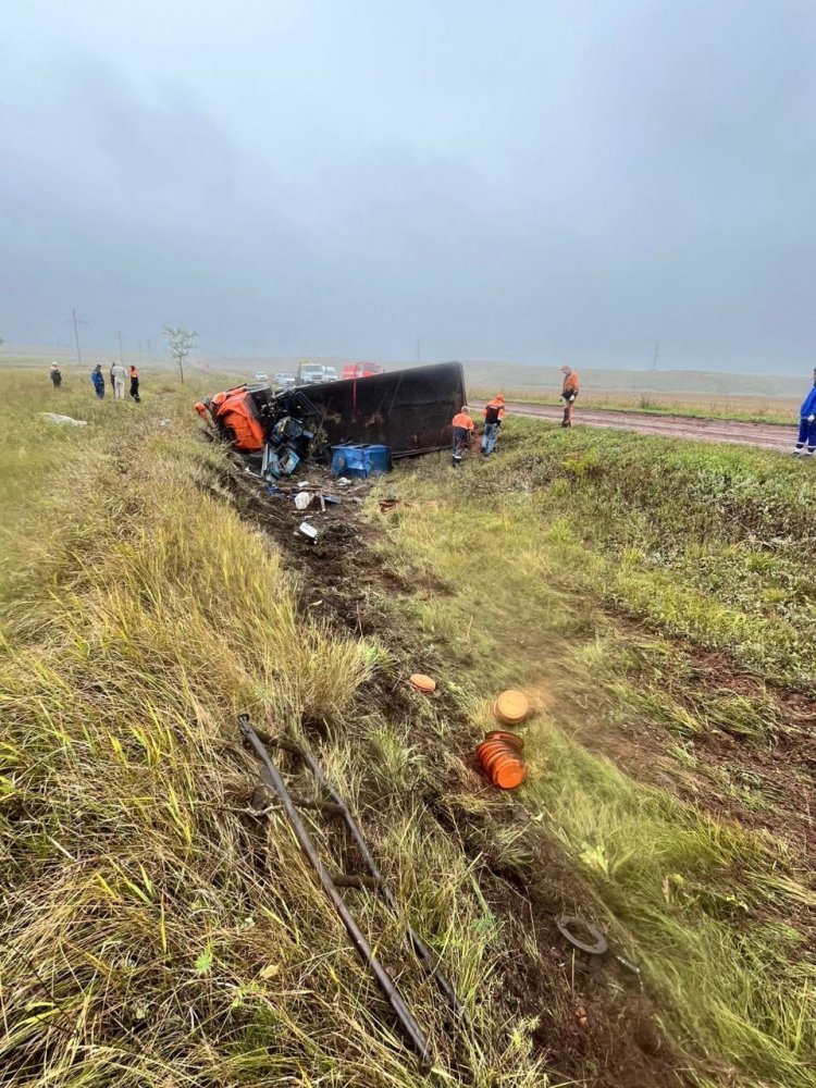 Фото с места, где перевернулся «КАМАЗ»; фото: Полиция Оренбуржья