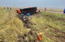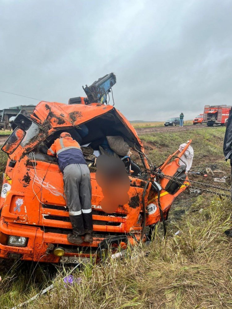 Фото с места, где перевернулся «КАМАЗ»; фото: Полиция Оренбуржья