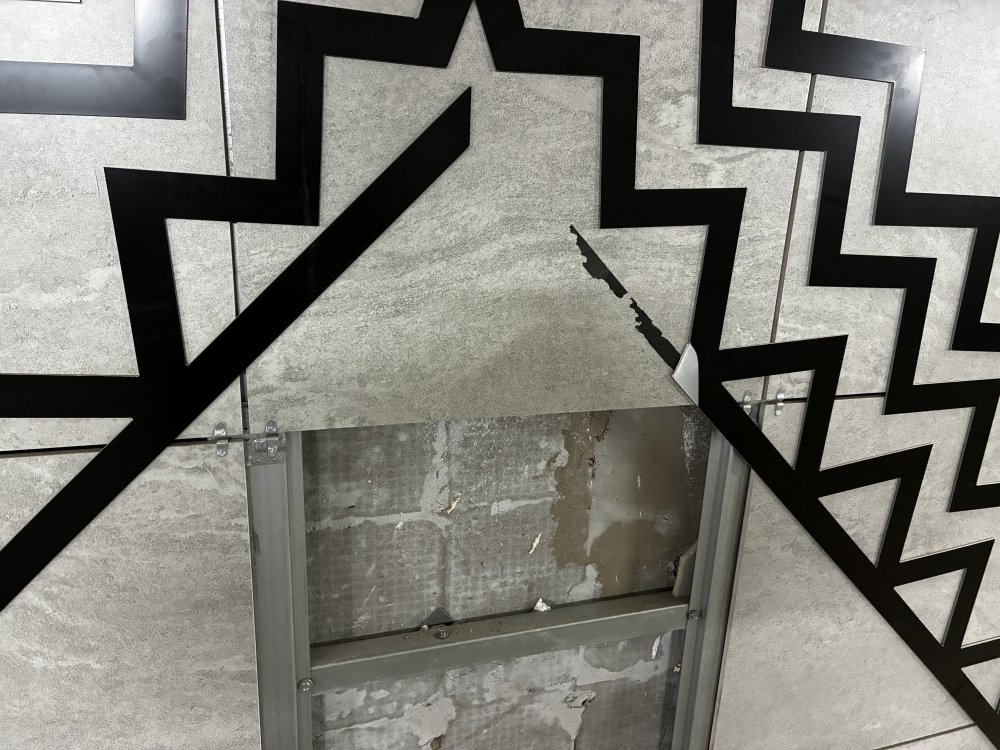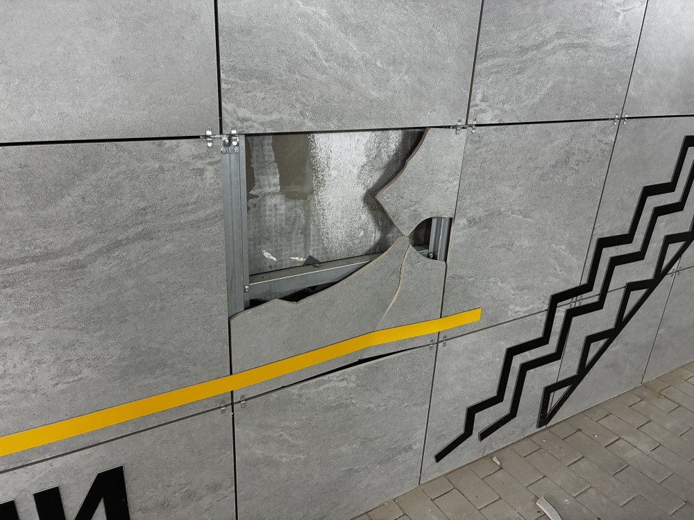 Стеновые панели разбиты, нанесенная на плитку надпись уничтожена. 18.11.2025, фото 1743.ru