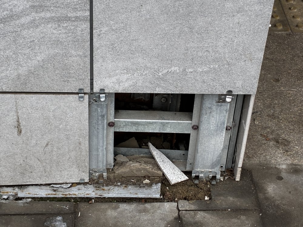 Разбитую плитку заменили, но теперь, 5 месяцев спустя, ее разнесли еще основательнее.