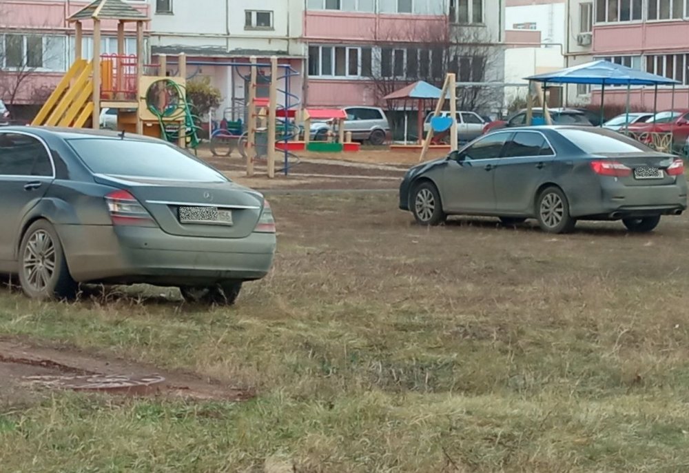 Парковка на газоне возле детской площадки — оренбургский тренд?
